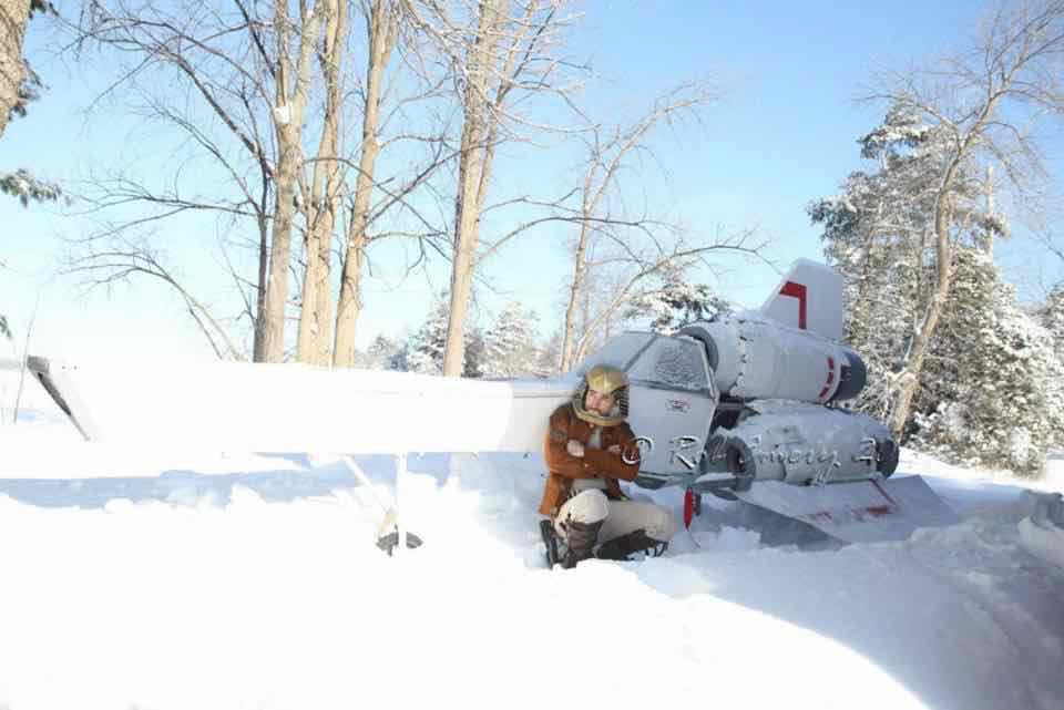 Viper Pilot (Classic)When my folks radio antenna got knocked down, I welded it into a 2/3 scale Viper (front is 3/4 scale so I can fit in, back is 1/2 scale as that matched the materials I had). I added wings, skin, front wheel and engines (water barrels) from Craigslist free stuff. The canopy, rear wheels & cowlings were made with new materials. I also turned my welding jacket into a pilot's uniform jacket by adding trim, buckles and shoulder patches. The helmet was purchased. The boots were initially made by converting a pair of Skywalker boots, and then later replaced with a more authentic BSG pair (that also I also enhanced). |