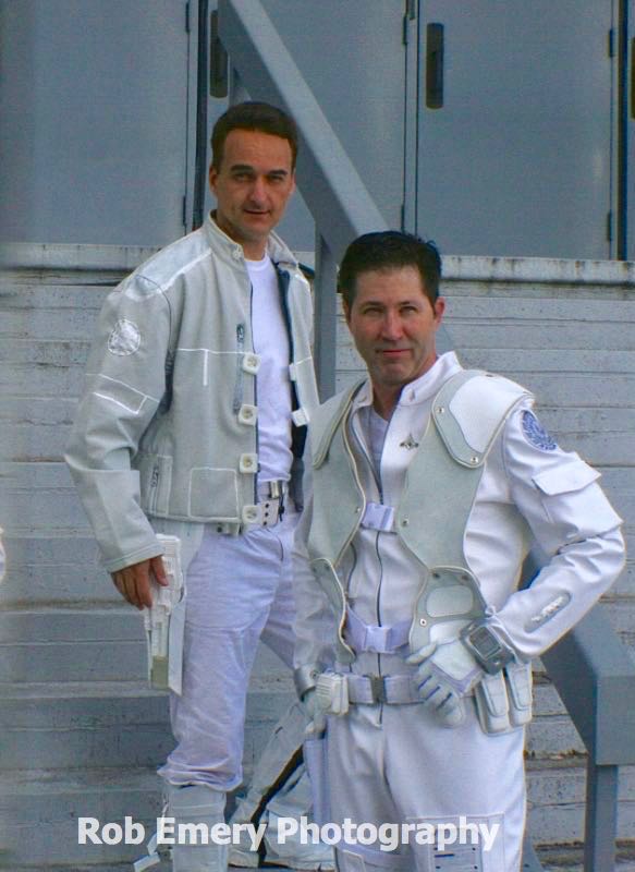 Viper Pilot (Classic - War Of The Gods)For DragonCon 2018 I made a War Of The Gods uniform, using another jacket re-sewn into shape and decorated with fabric paint. I 3D printed a new gun, holster & buckles and put white duct tape over the boots. | |