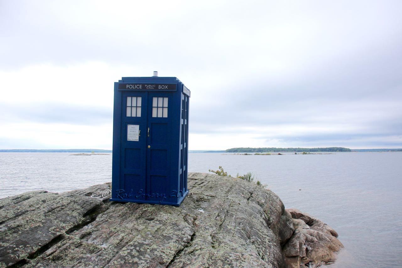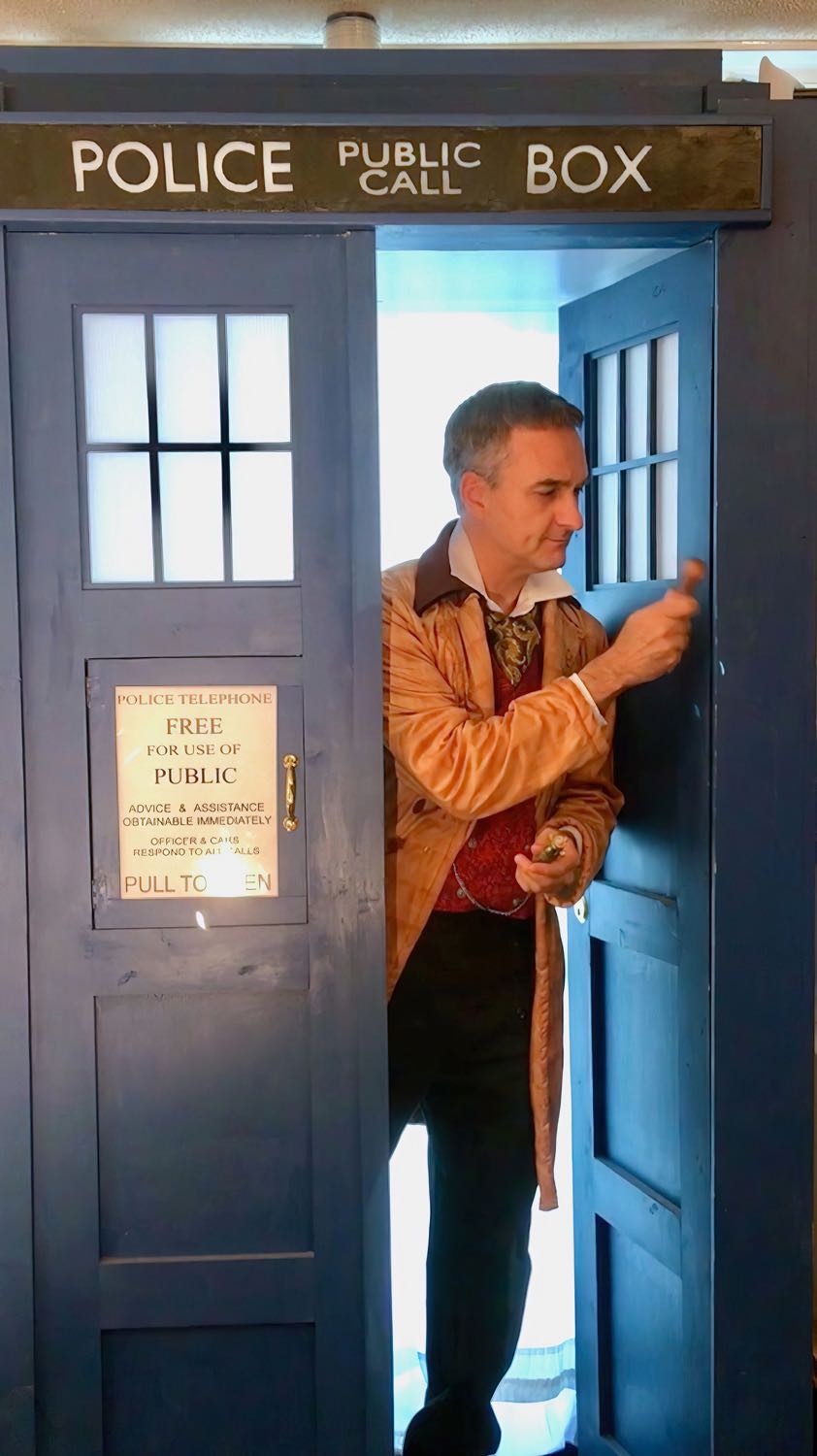 TardisI designed the Tardis to make it portable (it fits entirely in a sedan when disassembled), indoor-compatible (it fits under an 8' ceiling when assembled) but is still large enough to look full size (it's about 90% of the height of the 1980 Tom Yardley-Jones Tardis).