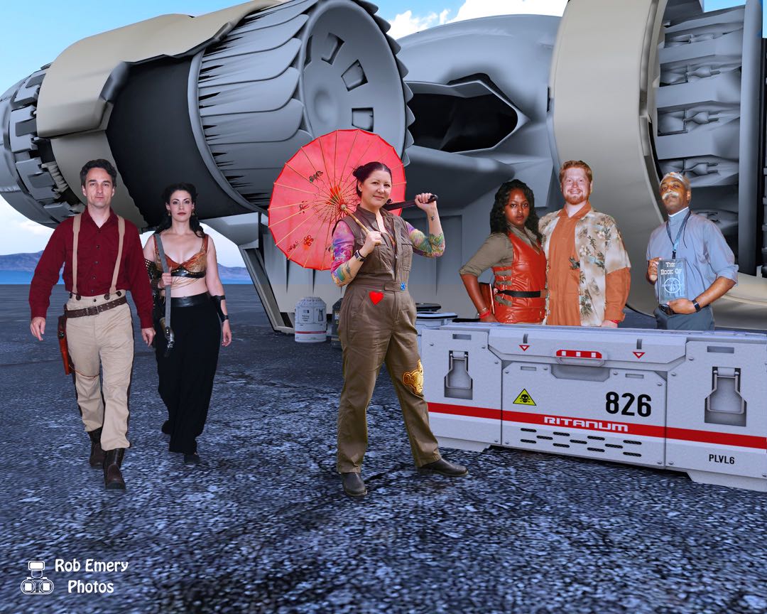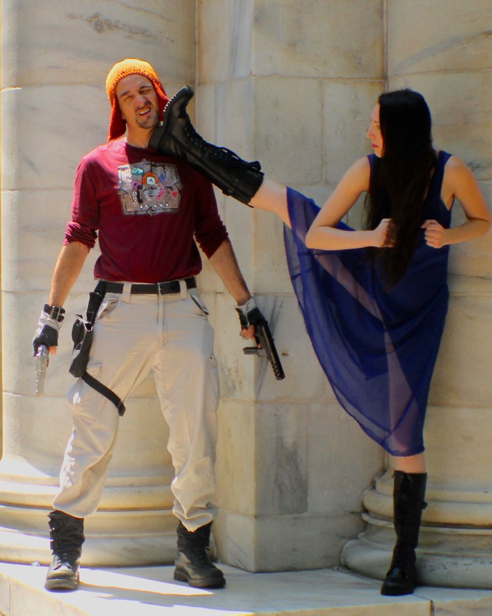 For Jayne, I added some cloth to a pair of biking gloves, modified a dollar store gun, created some shin wraps, and reproduced the shirt design with fabric paint. The Jayne hat and wrist cuff were purchases.