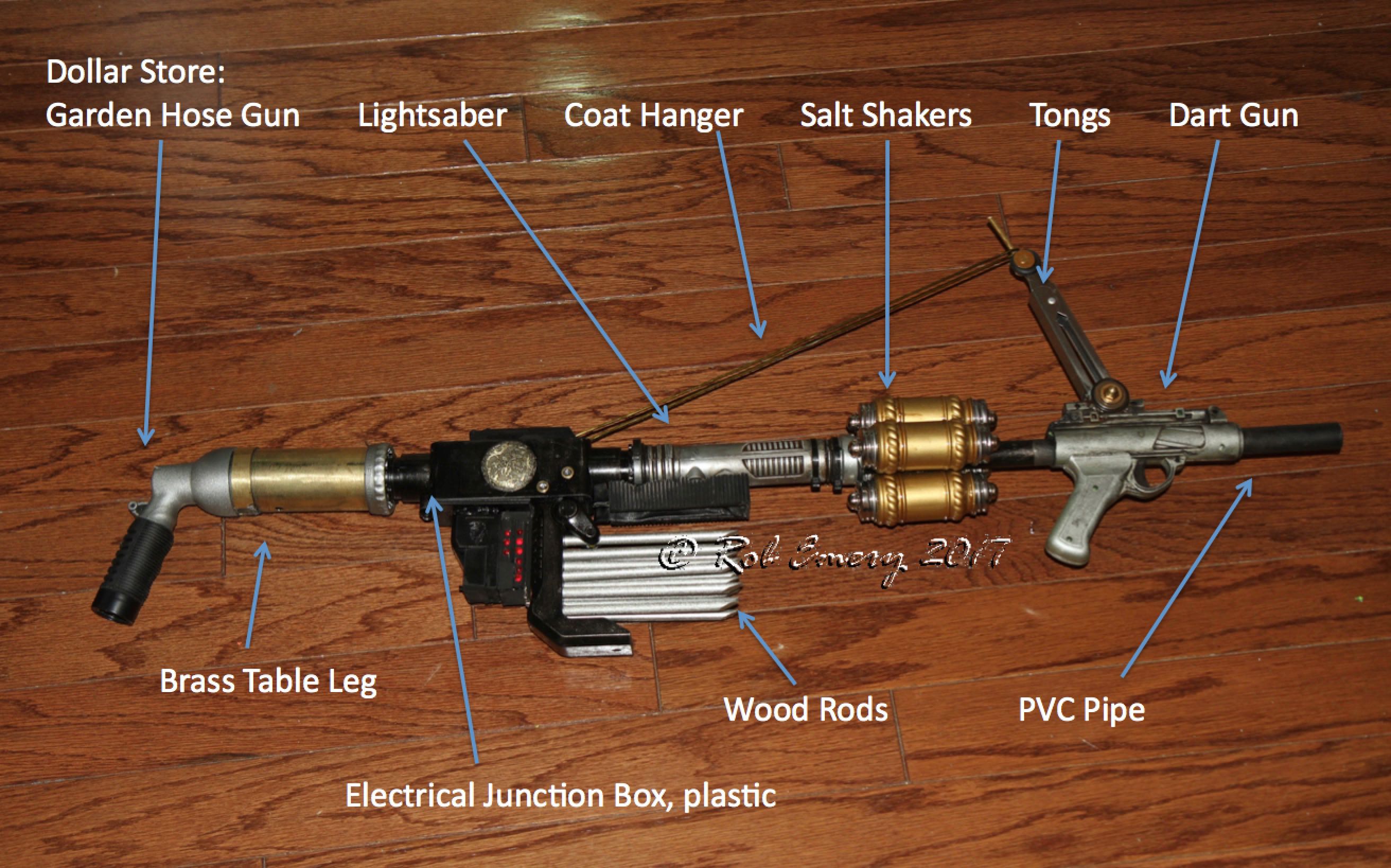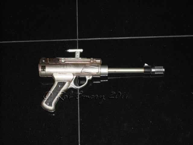 I made Inara's pistol out of a dollar store one, and a microphone, and added in a laser sight and power LED.