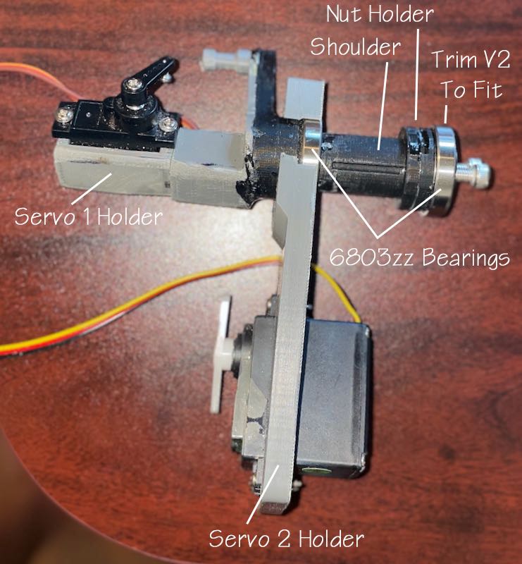 This design replaces the Baddeley V2 version with one that accomodates ball bearings for the shoulder joint, and makes more room for servo savers on the utility arms. The end of the shoulder socket needs to be trimmed to make room for the second bearing (or you can go with just one). The nuts and holder are added after the first bearing is installed on the shoulder (use only a small amount of silicone glue if you want it removable later).