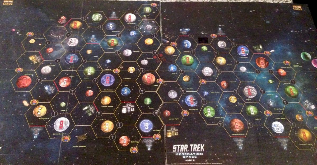 Star Trek Catan is limited to 4 players, and all are Federation, battling each other. That seemed odd, so I replaced them with 2 Federation (science red vs. military white) and added: blue Vulcans, black Klingons, green Romulans, brown Ferengi and grey Jem'Hadar. Some were molded and cast, some were 3D printed - see below for related files. The Vulcan ships were made with a bead and 1/2 a toothpick. I also replaced the Klingon (robber) with Borg Sphere & added an extra row of planets and two border expansion pieces to accommodate the extra players. The Support Cards slow the game with folks re-reading what was available so I took out the bad ones, and randomly give one to each player at the start (they're double use with no exchanges). We also ended up adopting some house rules: rolling a 7 doesn't allow you to take a card, it just moves the borg; your second placed ship doesn't have to be next to your second placed outpost (first outpost or first ship are ok). Some friends had the Federation Space Map pack, and wanted it improved, so I moved one of the trading bases to make their locations uniform, and cut the maps so they can be combined into one supermap. It plays well with the original rules so you can ignore the other "features" of that expansion pack. 3D printed parts: Ferengi Ship & Base, Klingon Base, Klingon Ships, Klingon Ship Stands, Romulan Ships, Jem'Hadar Ships, Extra Bases. | |